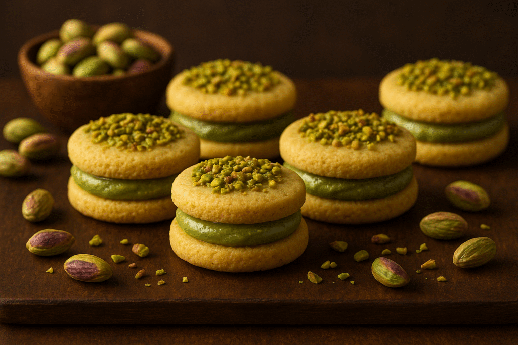 - Mini alfajores de pistacho para eventos: ideales para catering y fiestas.